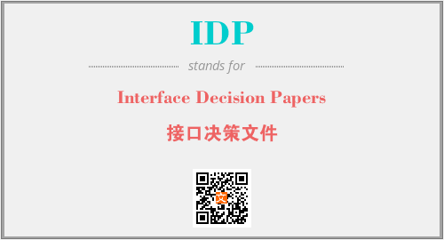 上述内容是“Interface Decision Papers”作为“IDP”的缩写,解释为“接口决策文件”时的信息,以及英文缩略词IDP所代表的英文单词,其对应的中文拼音、详细解释以及在英文中的流行度和相关分类、应用领域及应用示例等。