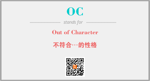 上述内容是“Out of Character”作为“OC”的缩写,解释为“不符合…的性格”时的信息,以及英文缩略词OC所代表的英文单词,其对应的中文拼音、详细解释以及在英文中的流行度和相关分类、应用领域及应用示例等。