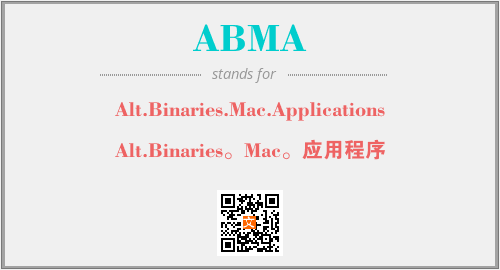 上述内容是“Alt.Binaries.Mac.Applications”作为“ABMA”的缩写,解释为“Alt.Binaries。Mac。应用程序”时的信息,以及英文缩略词ABMA所代表的英文单词,其对应的中文拼音、详细解释以及在英文中的流行度和相关分类、应用领域及应用示例等。