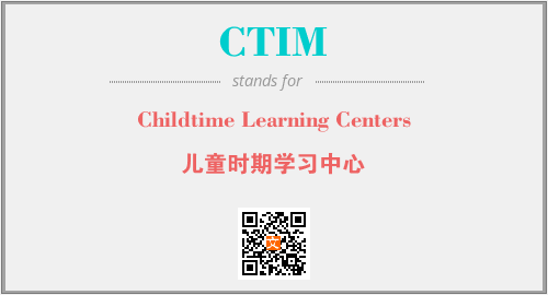 英文缩略词“CTIM”经常作为“Childtime Learning Centers”的英文缩写来使用,中文表示:“儿童时期学习中心”。本文将详细介绍英文缩写词CTIM所代表英文单词,其对应的中文拼音、详细解释以及在英语中的流行度。此外,还有关于缩略词CTIM的分类、应用领域及相关应用示例等。