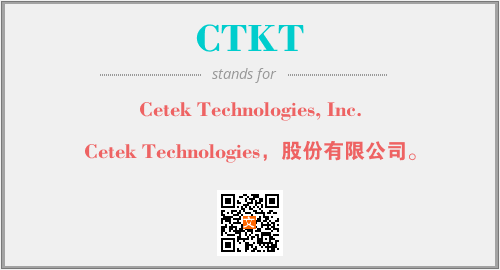 上述内容是“Cetek Technologies, Inc.”作为“CTKT”的缩写,解释为“Cetek Technologies,股份有限公司。”时的信息,以及英文缩略词CTKT所代表的英文单词,其对应的中文拼音、详细解释以及在英文中的流行度和相关分类、应用领域及应用示例等。