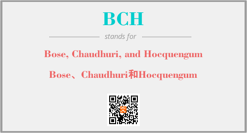 上述内容是“Bose, Chaudhuri, and Hocquengum”作为“BCH”的缩写,解释为“Bose、Chaudhuri和Hocquengum”时的信息,以及英文缩略词BCH所代表的英文单词,其对应的中文拼音、详细解释以及在英文中的流行度和相关分类、应用领域及应用示例等。