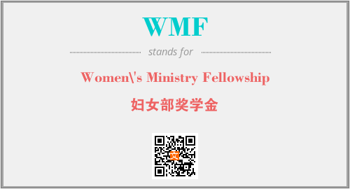 上述内容是“Women\'s Ministry Fellowship”作为“WMF”的缩写,解释为“妇女部奖学金”时的信息,以及英文缩略词WMF所代表的英文单词,其对应的中文拼音、详细解释以及在英文中的流行度和相关分类、应用领域及应用示例等。