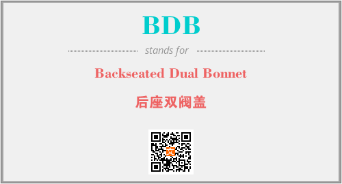 英文缩略词“BDB”经常作为“Backseated Dual Bonnet”的英文缩写来使用,中文表示:“后座双阀盖”。本文将详细介绍英文缩写词BDB所代表英文单词,其对应的中文拼音、详细解释以及在英语中的流行度。此外,还有关于缩略词BDB的分类、应用领域及相关应用示例等。