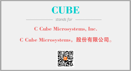 上述内容是“C Cube Microsystems, Inc.”作为“CUBE”的缩写,解释为“C Cube Microsystems,股份有限公司。”时的信息,以及英文缩略词CUBE所代表的英文单词,其对应的中文拼音、详细解释以及在英文中的流行度和相关分类、应用领域及应用示例等。