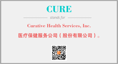 上述内容是“Curative Health Services, Inc.”作为“CURE”的缩写,解释为“医疗保健服务公司(股份有限公司)。”时的信息,以及英文缩略词CURE所代表的英文单词,其对应的中文拼音、详细解释以及在英文中的流行度和相关分类、应用领域及应用示例等。