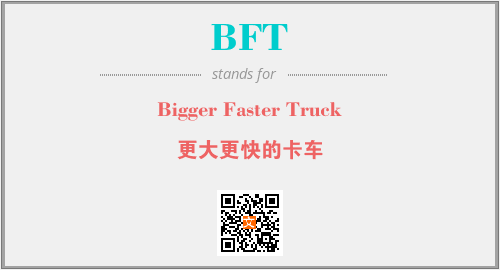 以上为Bigger Faster Truck英文缩略词BFT的中文解释,以及该英文缩写在英语的流行度、分类和应用领域方面的信息。