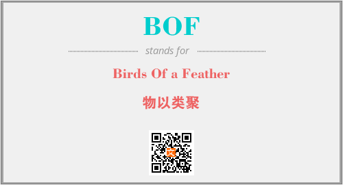 以上为Birds Of a Feather英文缩略词BOF的中文解释,以及该英文缩写在英语的流行度、分类和应用领域方面的信息。