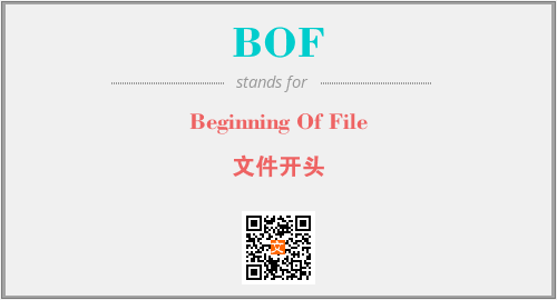 英文缩略词“BOF”经常作为“Beginning Of File”的英文缩写来使用,中文表示:“文件开头”。本文将详细介绍英文缩写词BOF所代表英文单词,其对应的中文拼音、详细解释以及在英语中的流行度。此外,还有关于缩略词BOF的分类、应用领域及相关应用示例等。