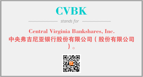 上述内容是“Central Virginia Bankshares, Inc.”作为“CVBK”的缩写,解释为“中央弗吉尼亚银行股份有限公司(股份有限公司)。”时的信息,以及英文缩略词CVBK所代表的英文单词,其对应的中文拼音、详细解释以及在英文中的流行度和相关分类、应用领域及应用示例等。
