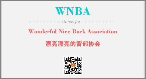 以上为Wonderful Nice Back Association英文缩略词WNBA的中文解释,以及该英文缩写在英语的流行度、分类和应用领域方面的信息。