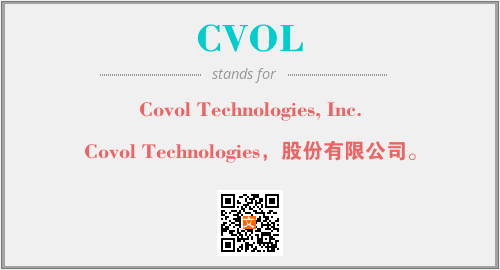 上述内容是“Covol Technologies, Inc.”作为“CVOL”的缩写,解释为“Covol Technologies,股份有限公司。”时的信息,以及英文缩略词CVOL所代表的英文单词,其对应的中文拼音、详细解释以及在英文中的流行度和相关分类、应用领域及应用示例等。