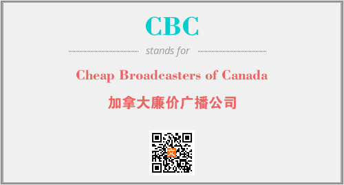 以上为Cheap Broadcasters of Canada英文缩略词CBC的中文解释,以及该英文缩写在英语的流行度、分类和应用领域方面的信息。
