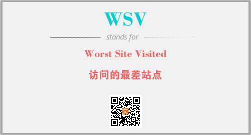 上述内容是“Worst Site Visited”作为“WSV”的缩写,解释为“访问的最差站点”时的信息,以及英文缩略词WSV所代表的英文单词,其对应的中文拼音、详细解释以及在英文中的流行度和相关分类、应用领域及应用示例等。