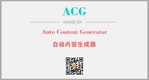 上述内容是“Auto Content Generator”作为“ACG”的缩写,解释为“自动内容生成器”时的信息,以及英文缩略词ACG所代表的英文单词,其对应的中文拼音、详细解释以及在英文中的流行度和相关分类、应用领域及应用示例等。