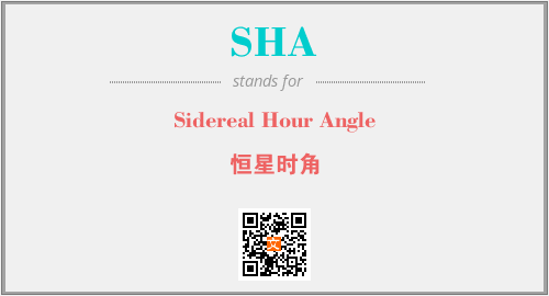 上述内容是“Sidereal Hour Angle”作为“SHA”的缩写,解释为“恒星时角”时的信息,以及英文缩略词SHA所代表的英文单词,其对应的中文拼音、详细解释以及在英文中的流行度和相关分类、应用领域及应用示例等。