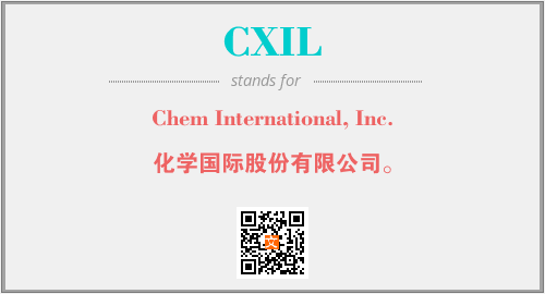 上述内容是“Chem International, Inc.”作为“CXIL”的缩写,解释为“化学国际股份有限公司。”时的信息,以及英文缩略词CXIL所代表的英文单词,其对应的中文拼音、详细解释以及在英文中的流行度和相关分类、应用领域及应用示例等。