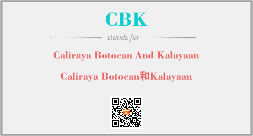 上述内容是“Caliraya Botocan And Kalayaan”作为“CBK”的缩写,解释为“Caliraya Botocan和Kalayaan”时的信息,以及英文缩略词CBK所代表的英文单词,其对应的中文拼音、详细解释以及在英文中的流行度和相关分类、应用领域及应用示例等。