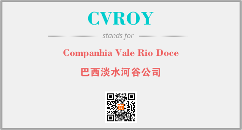 上述内容是“Companhia Vale Rio Doce”作为“CVROY”的缩写,解释为“巴西淡水河谷公司”时的信息,以及英文缩略词CVROY所代表的英文单词,其对应的中文拼音、详细解释以及在英文中的流行度和相关分类、应用领域及应用示例等。