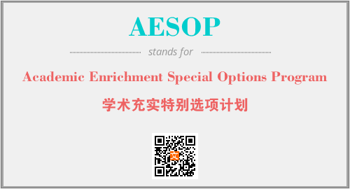 以上为Academic Enrichment Special Options Program英文缩略词AESOP的中文解释,以及该英文缩写在英语的流行度、分类和应用领域方面的信息。
