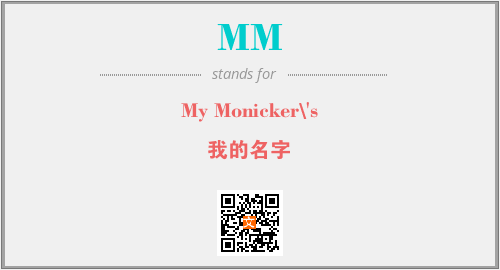 以上为My Monicker\'s英文缩略词MM的中文解释,以及该英文缩写在英语的流行度、分类和应用领域方面的信息。