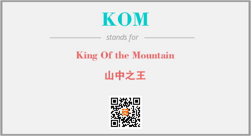 英文缩略词“KOM”经常作为“King Of the Mountain”的英文缩写来使用,中文表示:“山中之王”。本文将详细介绍英文缩写词KOM所代表英文单词,其对应的中文拼音、详细解释以及在英语中的流行度。此外,还有关于缩略词KOM的分类、应用领域及相关应用示例等。