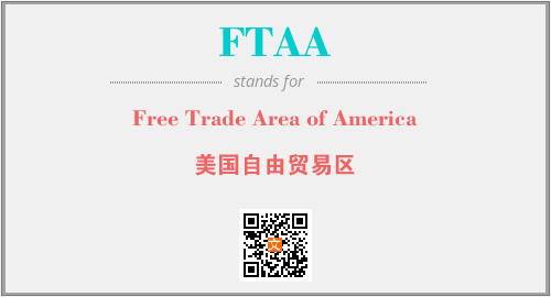 上述内容是“Free Trade Area of America”作为“FTAA”的缩写,解释为“美国自由贸易区”时的信息,以及英文缩略词FTAA所代表的英文单词,其对应的中文拼音、详细解释以及在英文中的流行度和相关分类、应用领域及应用示例等。