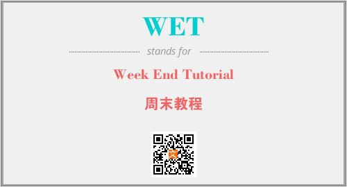 以上为Week End Tutorial英文缩略词WET的中文解释,以及该英文缩写在英语的流行度、分类和应用领域方面的信息。