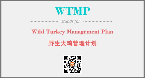 上述内容是“Wild Turkey Management Plan”作为“WTMP”的缩写,解释为“野生火鸡管理计划”时的信息,以及英文缩略词WTMP所代表的英文单词,其对应的中文拼音、详细解释以及在英文中的流行度和相关分类、应用领域及应用示例等。