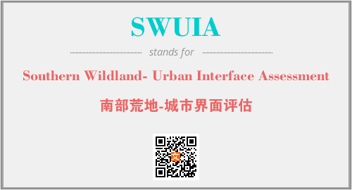 上述内容是“Southern Wildland- Urban Interface Assessment”作为“SWUIA”的缩写,解释为“南部荒地-城市界面评估”时的信息,以及英文缩略词SWUIA所代表的英文单词,其对应的中文拼音、详细解释以及在英文中的流行度和相关分类、应用领域及应用示例等。