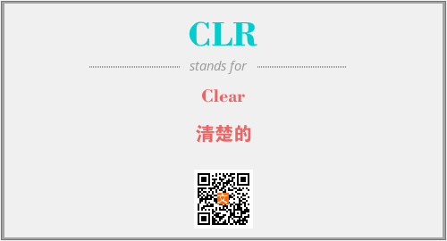 上述内容是“Clear”作为“CLR”的缩写,解释为“清楚的”时的信息,以及英文缩略词CLR所代表的英文单词,其对应的中文拼音、详细解释以及在英文中的流行度和相关分类、应用领域及应用示例等。