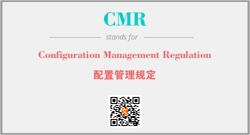 英文缩略词“CMR”经常作为“Configuration Management Regulation”的英文缩写来使用,中文表示:“配置管理规定”。本文将详细介绍英文缩写词CMR所代表英文单词,其对应的中文拼音、详细解释以及在英语中的流行度。此外,还有关于缩略词CMR的分类、应用领域及相关应用示例等。