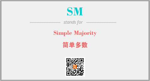 上述内容是“Simple Majority”作为“SM”的缩写,解释为“简单多数”时的信息,以及英文缩略词SM所代表的英文单词,其对应的中文拼音、详细解释以及在英文中的流行度和相关分类、应用领域及应用示例等。