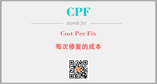 上述内容是“Cost Per Fix”作为“CPF”的缩写,解释为“每次修复的成本”时的信息,以及英文缩略词CPF所代表的英文单词,其对应的中文拼音、详细解释以及在英文中的流行度和相关分类、应用领域及应用示例等。