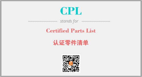 上述内容是“Certified Parts List”作为“CPL”的缩写,解释为“认证零件清单”时的信息,以及英文缩略词CPL所代表的英文单词,其对应的中文拼音、详细解释以及在英文中的流行度和相关分类、应用领域及应用示例等。