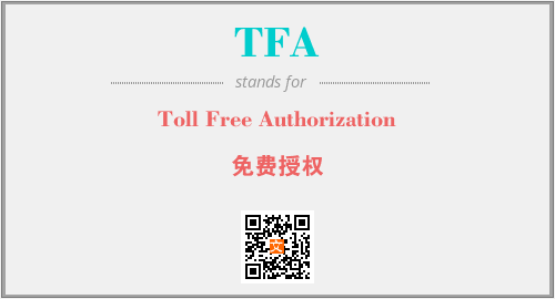 以上为Toll Free Authorization英文缩略词TFA的中文解释,以及该英文缩写在英语的流行度、分类和应用领域方面的信息。