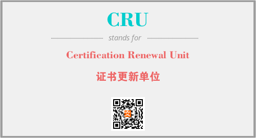 英文缩略词“CRU”经常作为“Certification Renewal Unit”的英文缩写来使用,中文表示:“证书更新单位”。本文将详细介绍英文缩写词CRU所代表英文单词,其对应的中文拼音、详细解释以及在英语中的流行度。此外,还有关于缩略词CRU的分类、应用领域及相关应用示例等。