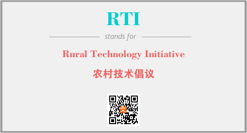 上述内容是“Rural Technology Initiative”作为“RTI”的缩写,解释为“农村技术倡议”时的信息,以及英文缩略词RTI所代表的英文单词,其对应的中文拼音、详细解释以及在英文中的流行度和相关分类、应用领域及应用示例等。