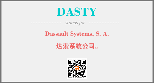 上述内容是“Dassault Systems, S. A.”作为“DASTY”的缩写,解释为“达索系统公司。”时的信息,以及英文缩略词DASTY所代表的英文单词,其对应的中文拼音、详细解释以及在英文中的流行度和相关分类、应用领域及应用示例等。
