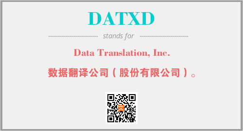 上述内容是“Data Translation, Inc.”作为“DATXD”的缩写,解释为“数据翻译公司(股份有限公司)。”时的信息,以及英文缩略词DATXD所代表的英文单词,其对应的中文拼音、详细解释以及在英文中的流行度和相关分类、应用领域及应用示例等。