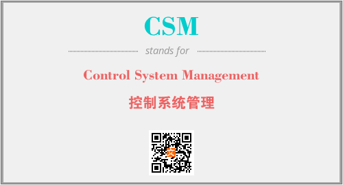 英文缩略词“CSM”经常作为“Control System Management”的英文缩写来使用,中文表示:“控制系统管理”。本文将详细介绍英文缩写词CSM所代表英文单词,其对应的中文拼音、详细解释以及在英语中的流行度。此外,还有关于缩略词CSM的分类、应用领域及相关应用示例等。