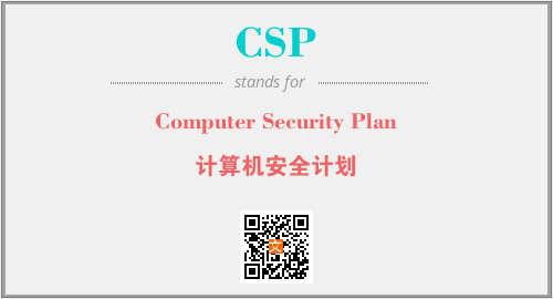 英文缩略词“CSP”经常作为“Computer Security Plan”的英文缩写来使用,中文表示:“计算机安全计划”。本文将详细介绍英文缩写词CSP所代表英文单词,其对应的中文拼音、详细解释以及在英语中的流行度。此外,还有关于缩略词CSP的分类、应用领域及相关应用示例等。