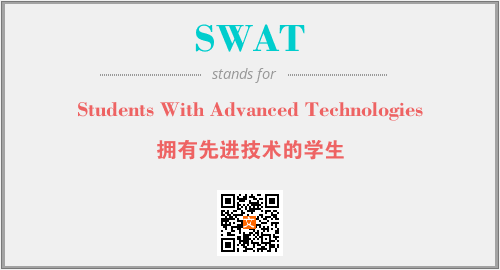 以上为Students With Advanced Technologies英文缩略词SWAT的中文解释,以及该英文缩写在英语的流行度、分类和应用领域方面的信息。