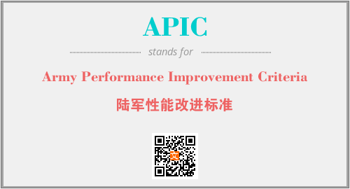 英文缩略词“APIC”经常作为“Army Performance Improvement Criteria”的英文缩写来使用,中文表示:“陆军性能改进标准”。本文将详细介绍英文缩写词APIC所代表英文单词,其对应的中文拼音、详细解释以及在英语中的流行度。此外,还有关于缩略词APIC的分类、应用领域及相关应用示例等。