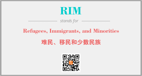 上述内容是“Refugees, Immigrants, and Minorities”作为“RIM”的缩写,解释为“难民、移民和少数民族”时的信息,以及英文缩略词RIM所代表的英文单词,其对应的中文拼音、详细解释以及在英文中的流行度和相关分类、应用领域及应用示例等。