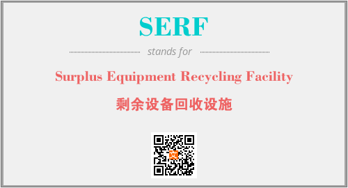 上述内容是“Surplus Equipment Recycling Facility”作为“SERF”的缩写,解释为“剩余设备回收设施”时的信息,以及英文缩略词SERF所代表的英文单词,其对应的中文拼音、详细解释以及在英文中的流行度和相关分类、应用领域及应用示例等。