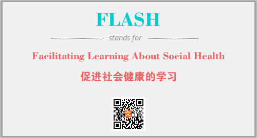 上述内容是“Facilitating Learning About Social Health”作为“FLASH”的缩写,解释为“促进社会健康的学习”时的信息,以及英文缩略词FLASH所代表的英文单词,其对应的中文拼音、详细解释以及在英文中的流行度和相关分类、应用领域及应用示例等。