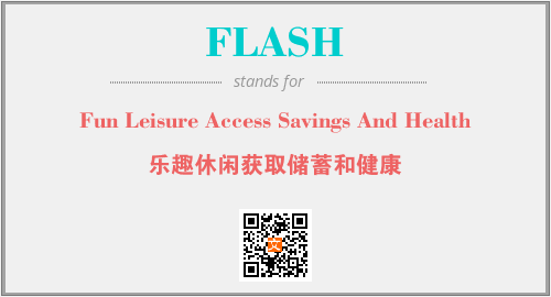 上述内容是“Fun Leisure Access Savings And Health”作为“FLASH”的缩写,解释为“乐趣休闲获取储蓄和健康”时的信息,以及英文缩略词FLASH所代表的英文单词,其对应的中文拼音、详细解释以及在英文中的流行度和相关分类、应用领域及应用示例等。