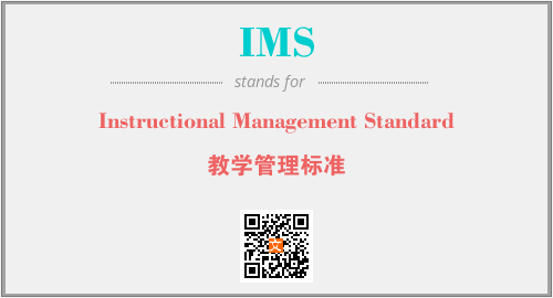 英文缩略词“IMS”经常作为“Instructional Management Standard”的英文缩写来使用,中文表示:“教学管理标准”。本文将详细介绍英文缩写词IMS所代表英文单词,其对应的中文拼音、详细解释以及在英语中的流行度。此外,还有关于缩略词IMS的分类、应用领域及相关应用示例等。