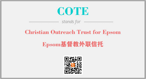 上述内容是“Christian Outreach Trust for Epsom”作为“COTE”的缩写,解释为“Epsom基督教外联信托”时的信息,以及英文缩略词COTE所代表的英文单词,其对应的中文拼音、详细解释以及在英文中的流行度和相关分类、应用领域及应用示例等。